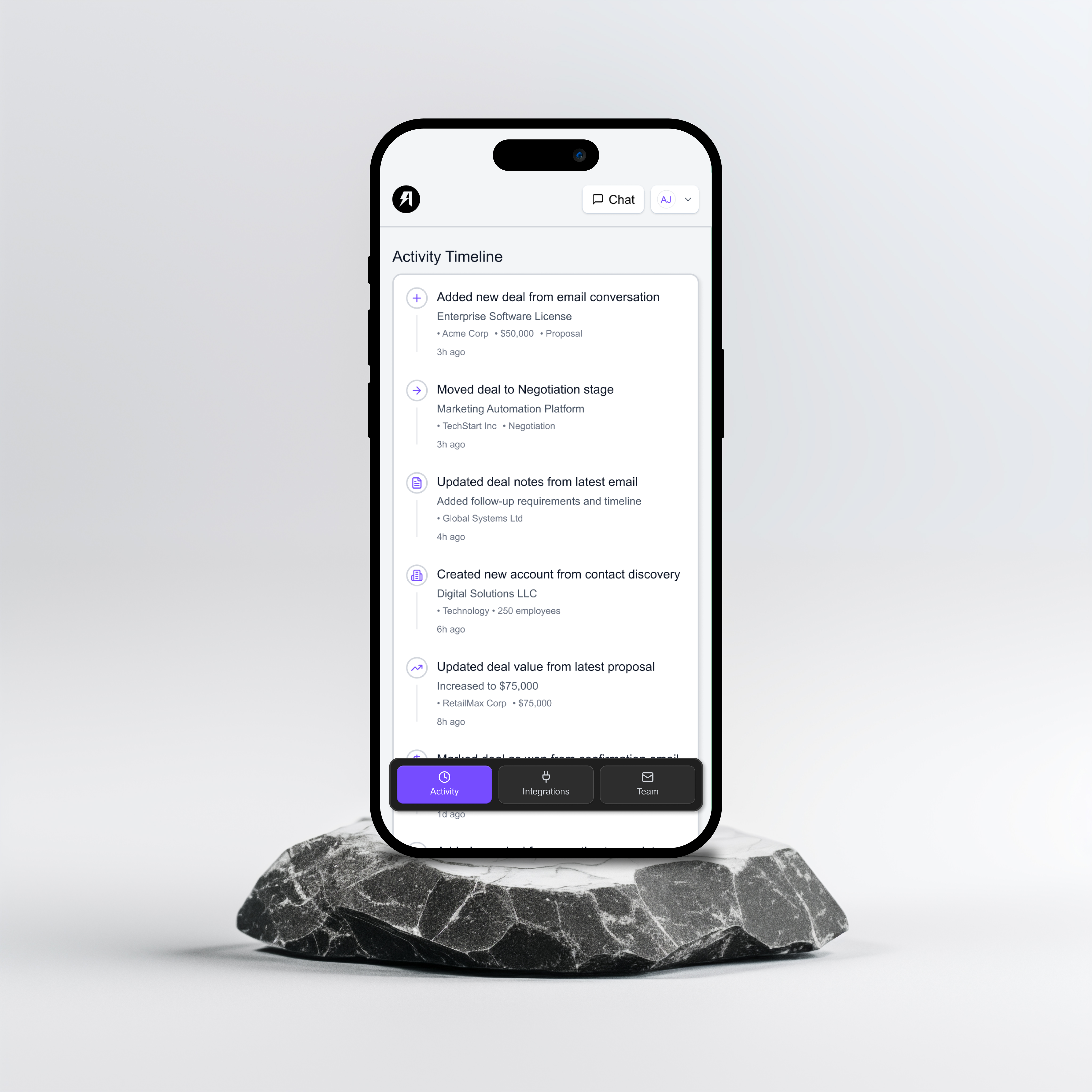A live activity timeline from your inbox to see when deals moved, and what’s happening next